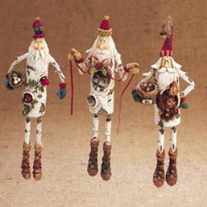 The Detailed Description of 7 75" POLYRESIN DANGLE LEG BIRCH SANTA ORNAMENT, SET OF 3 ASSORTED - Christmas Ornament