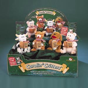 5.5" PLUSH CAROLIN CRITTER W/VOICE CHIP 4/ASSTD: DOG "JINGLE BELLS," CAT "WE WISH YOU A MERRY CHRISTMAS," PIG "OH CHRISTMAS TREE" & COW "DECK THE HALLS."