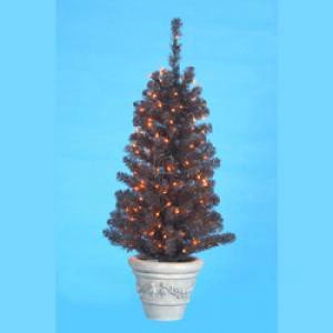4PRE-LIT BLACK PLASTIC TREE W/150 TIPS, UL-150 ORANGE LIGHTS, POT# CA-50/BR01 & 21" GIRTH.