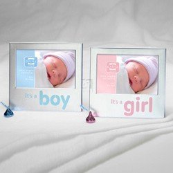 picture frames / photo frames: An adorable piece for any little boy's room Fashioned in metal with blue "It's a boy" text. Features a velvet easel back for horizontal table-top display. Or use the included hooks for easy wall mounting. Glare resistant glass lens. Produced expressly for SendAFrame by Prinz.
